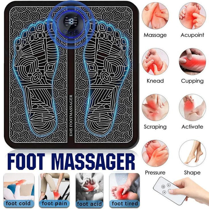 • Relax and recharge your tired feet with the EMS Foot Massager Mat – a lightweight, foldable pad that uses Electrical Muscle Stimulation (EMS) to improve blood circulation, reduce fatigue, and relieve foot pain. Designed for convenience, this portable mat is perfect for home, office, or travel use. Simply place your feet on the soft pad, choose your intensity level, and enjoy a soothing massage anytime, anywhere.