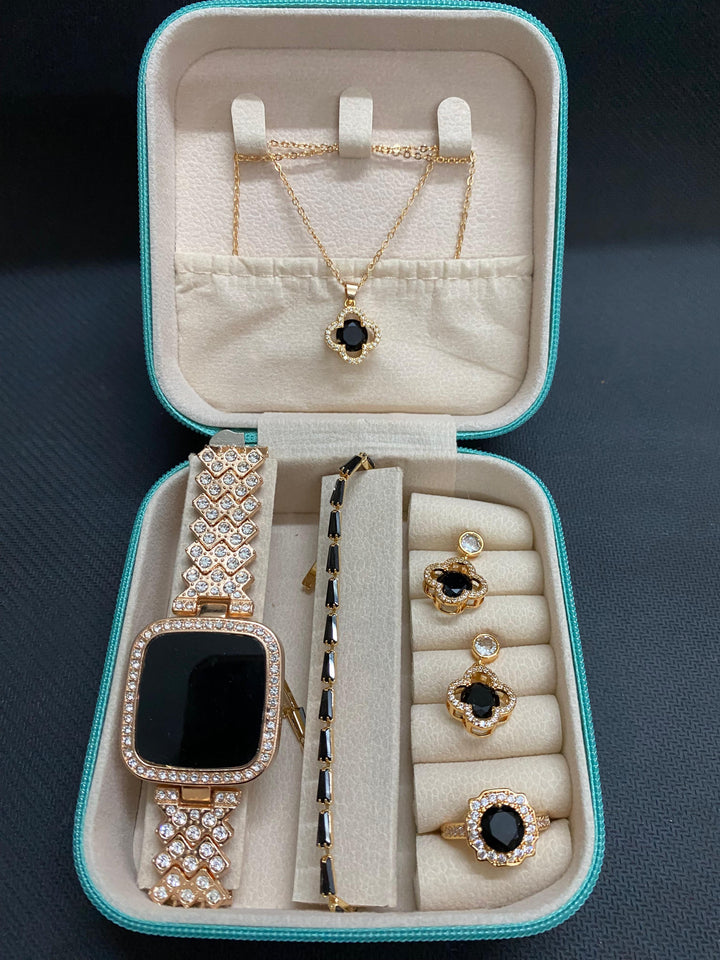 ✨ Luxury Black Stone Jewelry & Watch Gift Set ✨